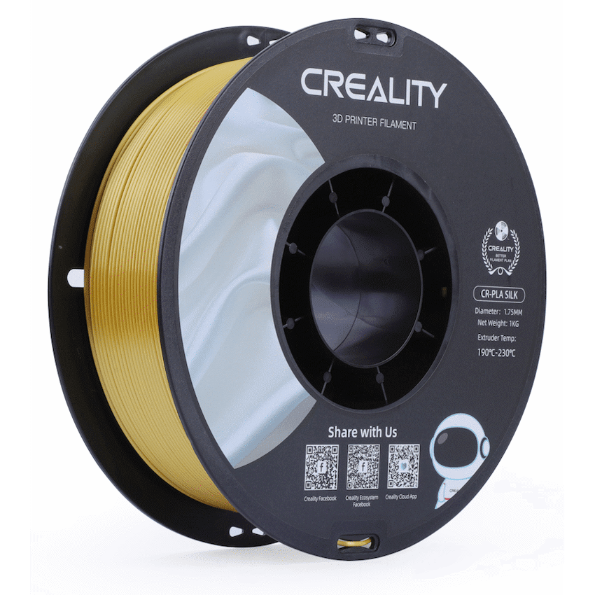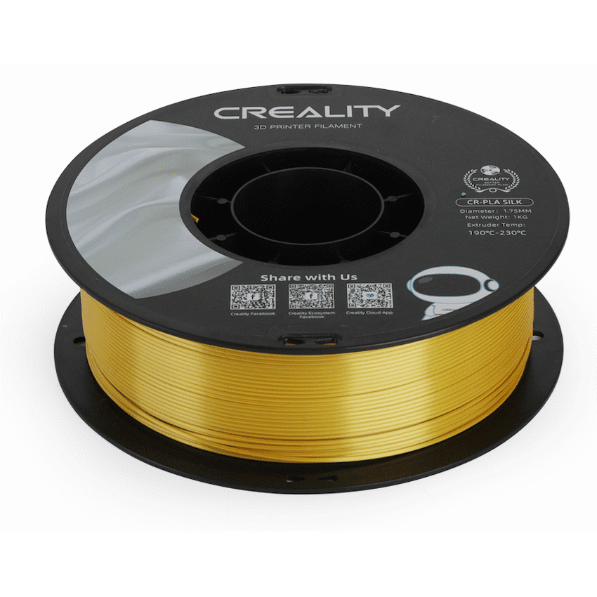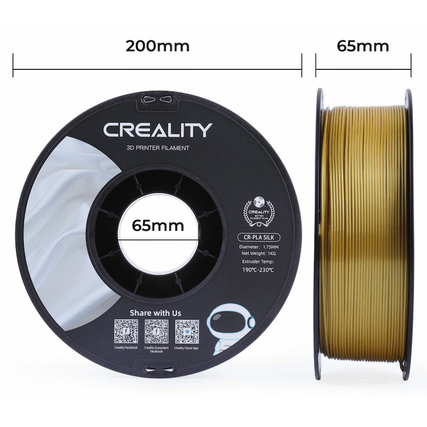 Creality Silk Filament is a premium 3D printing material that brings a touch of elegance and uniqueness to your creations. Crafted with meticulous precision and utmost attention to detail, this filament boasts a captivating silky sheen that imparts a lustrous finish to your printed objects. The mesmerizing iridescence of the Silk Filament adds a luxurious touch to your prints, making them stand out among the crowd.Engineered with high-quality raw materials, the Creality Silk Filament ensures excellent printability and smooth extrusion, resulting in flawlessly detailed and aesthetically pleasing prints. Its consistent diameter and low tolerance provide a seamless printing experience, reducing the risk of clogs and jams in your 3D printer.Furthermore, this filament is designed to be compatible with a wide range of 3D printers, ensuring that you can achieve superior results regardless of the brand or model you own. The Creality Silk Filament supports printing at various temperatures, offering versatility and flexibility in realizing your creative visions.Whether you’re printing intricate artistic pieces, functional objects, or decorative items, the Creality Silk Filament elevates your 3D printing endeavors to new heights. Its striking visual appeal, combined with reliable performance, makes it an ideal choice for artists, designers, hobbyists, and professionals alike.Unleash your imagination and indulge in the captivating beauty of Creality Silk Filament, transforming your concepts into tangible masterpieces that exude elegance and charm. Elevate your 3D printing projects with this remarkable filament and witness how it weaves a touch of opulence into your creative journey. Experience the magic of silk-like prints that radiate a distinct allure, setting your creations apart in a world of infinite possibilities.What’s in the box1 x User Manual1 x Creality Silk Filament