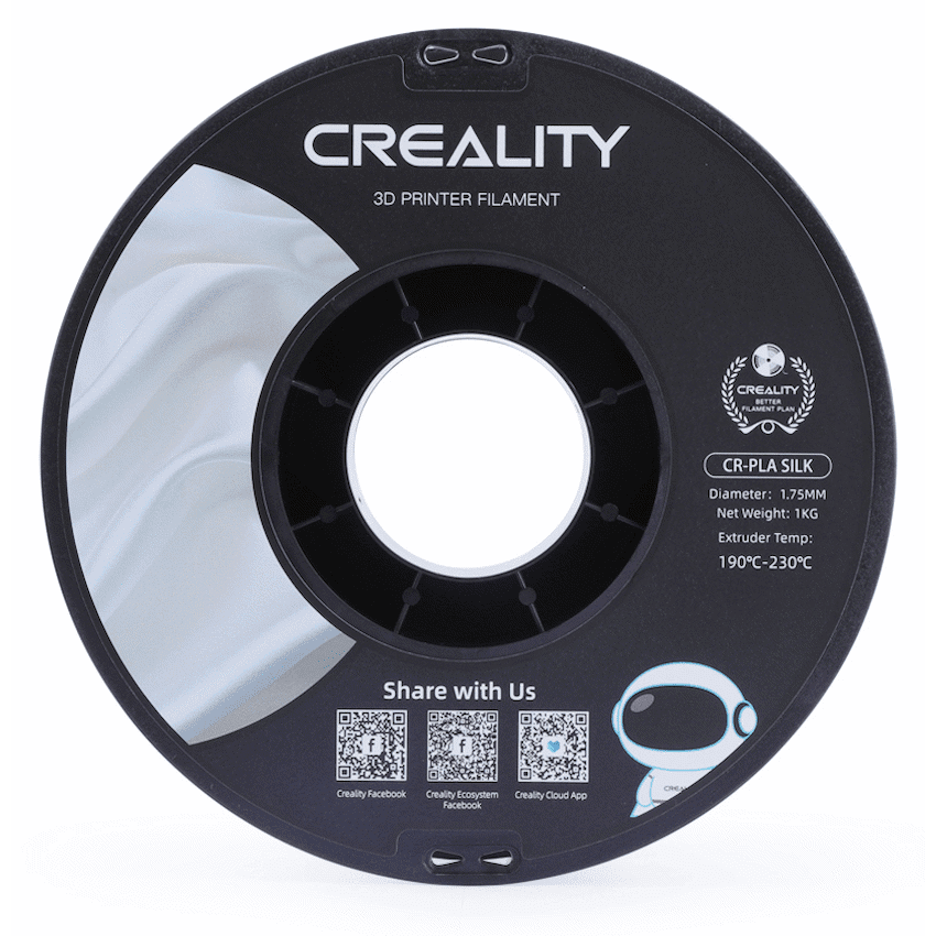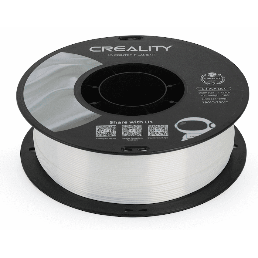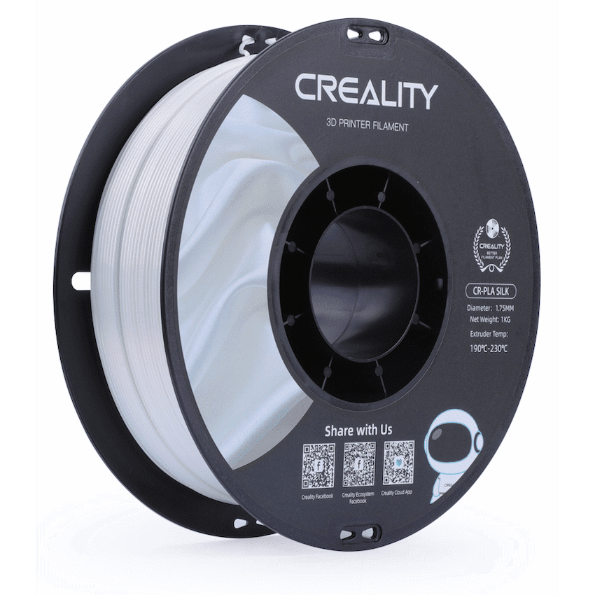 Creality Silk Filament is a premium 3D printing material that brings a touch of elegance and uniqueness to your creations. Crafted with meticulous precision and utmost attention to detail, this filament boasts a captivating silky sheen that imparts a lustrous finish to your printed objects. The mesmerizing iridescence of the Silk Filament adds a luxurious touch to your prints, making them stand out among the crowd.Engineered with high-quality raw materials, the Creality Silk Filament ensures excellent printability and smooth extrusion, resulting in flawlessly detailed and aesthetically pleasing prints. Its consistent diameter and low tolerance provide a seamless printing experience, reducing the risk of clogs and jams in your 3D printer.Furthermore, this filament is designed to be compatible with a wide range of 3D printers, ensuring that you can achieve superior results regardless of the brand or model you own. The Creality Silk Filament supports printing at various temperatures, offering versatility and flexibility in realizing your creative visions.Whether you’re printing intricate artistic pieces, functional objects, or decorative items, the Creality Silk Filament elevates your 3D printing endeavors to new heights. Its striking visual appeal, combined with reliable performance, makes it an ideal choice for artists, designers, hobbyists, and professionals alike.Unleash your imagination and indulge in the captivating beauty of Creality Silk Filament, transforming your concepts into tangible masterpieces that exude elegance and charm. Elevate your 3D printing projects with this remarkable filament and witness how it weaves a touch of opulence into your creative journey. Experience the magic of silk-like prints that radiate a distinct allure, setting your creations apart in a world of infinite possibilities.What’s in the box1 x User Manual1 x Creality Silk Filament