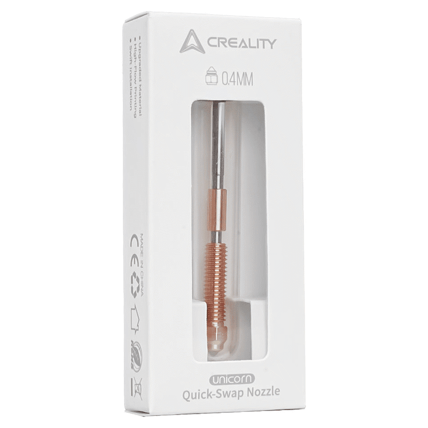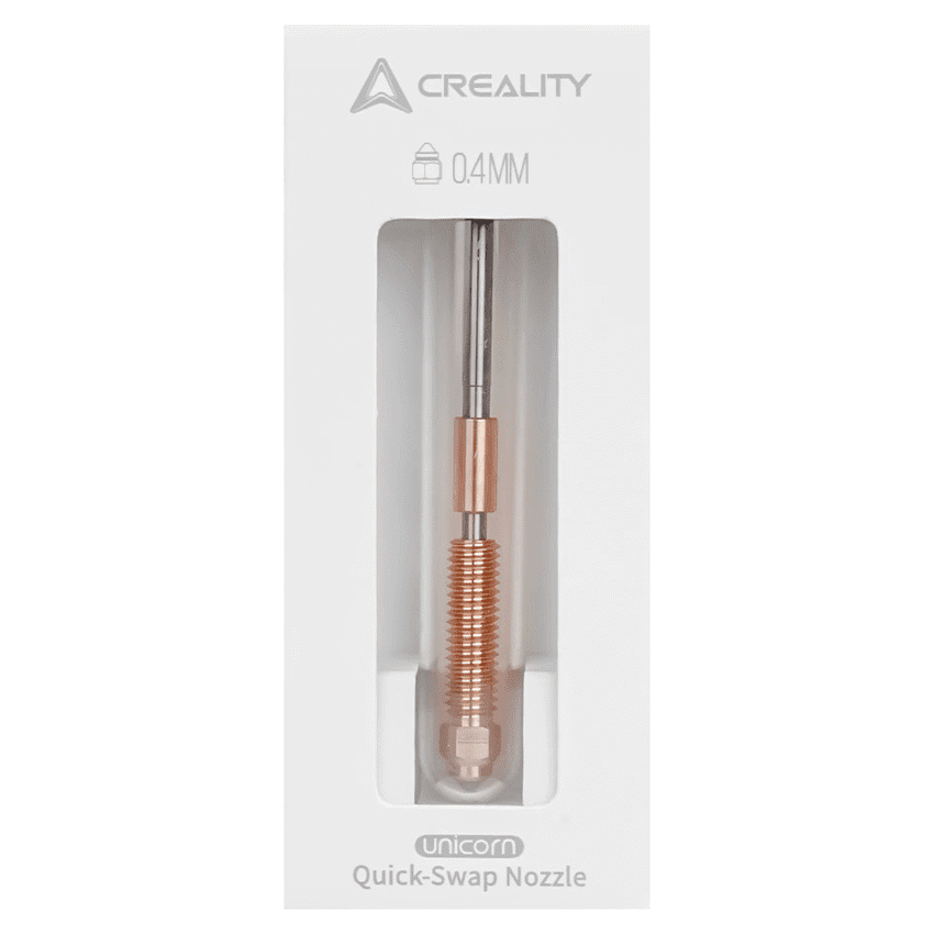 Keep your Creality printers performing at their best with the Creality Unicorn Replacement Nozzle, designed specifically for the K1C and Ender-3 V3 series. Built for high-flow extrusion, this nozzle enables faster printing without compromising on precision-ideal for both speed-focused projects and detailed models.Crafted from durable, heat-resistant material, the nozzle ensures consistent filament flow, reducing clogs and improving reliability across long print sessions. Its precision machining guarantees smooth extrusion, better layer adhesion, and sharper detail in every print.Easy to install, this official Creality replacement part offers perfect compatibility with the Unicorn Hotend system, making it a must-have spare for maintenance or upgrades.